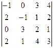 = -1(6 – 4) – 1(9 – 1) + 2(12 – 2) = -2 – 8 + 20 = 10.