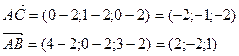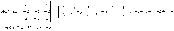 Пример. Вычислить площадь треугольника с вершинами А(2, 2, 2), В(4, 0, 3),С(0, 1, 0).