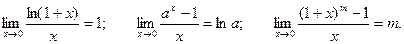 Кроме трех, изложенных выше, пределов можно записать следующие полезные на практике соотношения:
