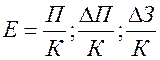 Показывает сколько чистой прибыли или прироста прибыли или экономии затрат приходится на каждый вложенный рубль. Чем выше Е, тем эффективнее использование капитальных вложений.