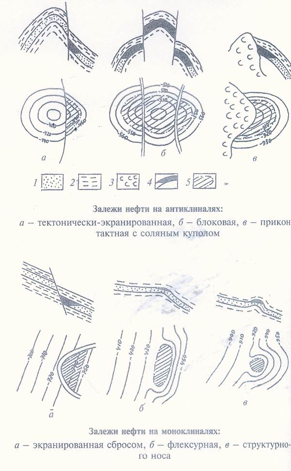 Наиболее распространенный в земной коре залежи структурного класса, приурочены к антиклиналям, среди которых выделяются: сводовые, висячие, тектонически-экранированные, блоковые и приконтактные.