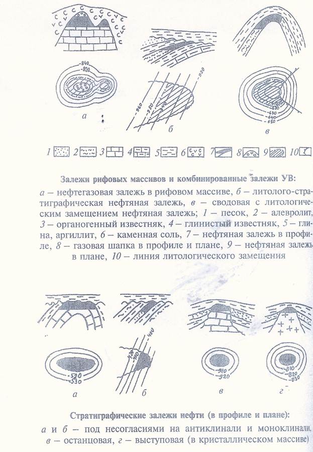 По генезису ловушек типы залежей подразделяются на несколько классов: структурный, литологический, стратиграфический, рифогенный, смешанный (комбинированный).