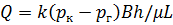, коэффициент прницаемости k и состояние насыщающей ее жидкости через коэффициент вязкости