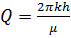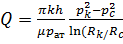 Интегрирование первого уравнения с разделяющимися переменными позволяет получить выражение для объемного расхода (дебита) добывающей скважины, которое называется формулой Дюпюи (15).