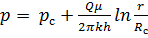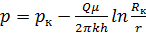 Формулы для распределения давления при плоскорадиальной фильтрации в пласте имеют следующий вид: