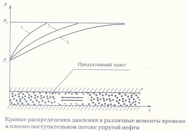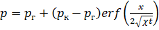 Интегрирование уравнения пъезопроводности при названных начальных и граничных условиях дает следующий закон распределения давления: