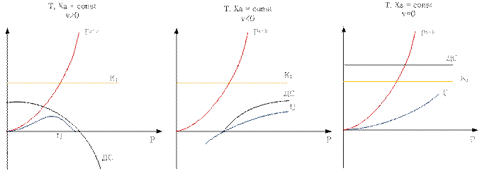 При увеличении давления возрастает величина Рa+b, следовательно увеличивается скорость реакции. С увеличением давления движущая сила химической реакции уменьшается, скорость реакции уменьшается.