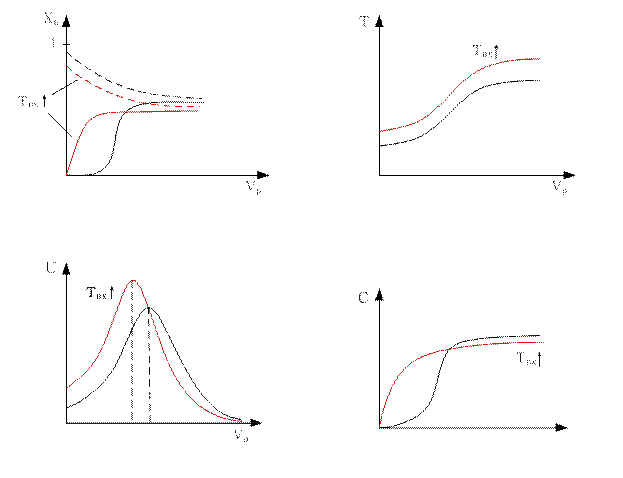 Для РПС характер зависимости при проведении процесса в адиабатическом режиме аналогичен адиабатическому у РИВ, за исключением случая, когда реакторе РПС наблюдается зона множественных стационарных состояний.