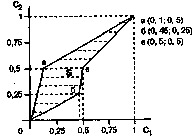 С1 = 0.1 x1 + 0.9 x2; C2=0.5 x1 + 0.5 x2