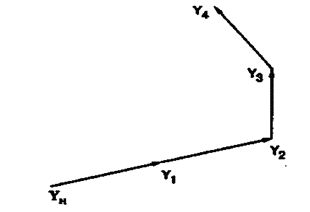 В этой точке ЛПР определяет градиент глобальной целевой функции следующим образом. Один из критериев считается опорным. Берется небольшое изменение значения этого критер ия (в сторону улучшения) от начального. Перед ЛПР ставятся вопросы типа: какое изменение по иному критерию эквивал ентно заданному изменению опорного критерия? Ответы ЛПР определяют вектор (направление), вдоль, которого изменение глобального критерия будет наиболее эффективным. Вдоль это- го направления делается шаг определенной длины и получаются новые значения по всем критериям. Совокупность этих знач ений (вектор) предъявляется ЛПР вместе с первоначальным решением (соответствующим начальной точке). Далее перед ЛПР ставится вопрос: какое из решений лучше? Если лучше новое решение (назовем его Y 1), то делается еще шаг вдоль это-го же направления и вычисляется решение Y 2. Далее Y 1 и Y 2 предъявляются ЛПР. Если Y 2 лучше, то делается еще шаг в прежнем направлении, и т.д. Если Y 1 лучше, чем Y 2, то в точк е Y 2 определяется новый градиент (направление) изменения