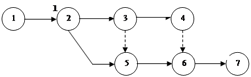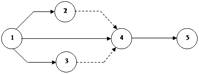 При выполнении параллельных работ, т.е. если одно событие служит началом двух работ или более, заканчивающееся другим событием, вводятся зависимость и дополнительное событие, иначе одинаковые события будут иметь одинаковый ход