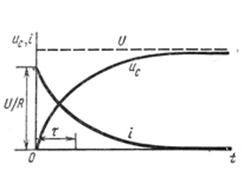 Зарядка конденсатора. Напряжение в переходном режиме при зарядке конденсатора изменяется по закону