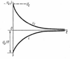 Изменение напряжения на конденсаторе и тока в цепи при разрядке конденсатора приведены на рисунке.