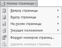 В программе заложено много вариантов нумерации, которые сгруппированы в подменю Вверху страницы, Внизу страницы, На полях страницы и Текущее положение.