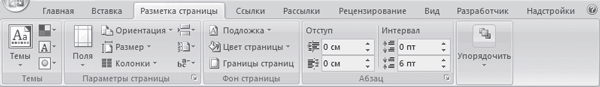 Программа Word 2007 обладает широкими возможностями для разметки. Необходимые действия выполняются на вкладке Разметка страницы, содержимое которой представлено на рис. 2.33.