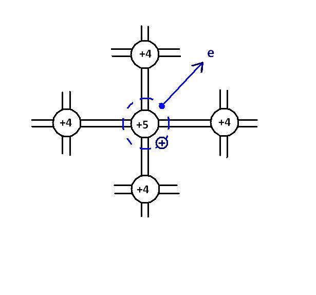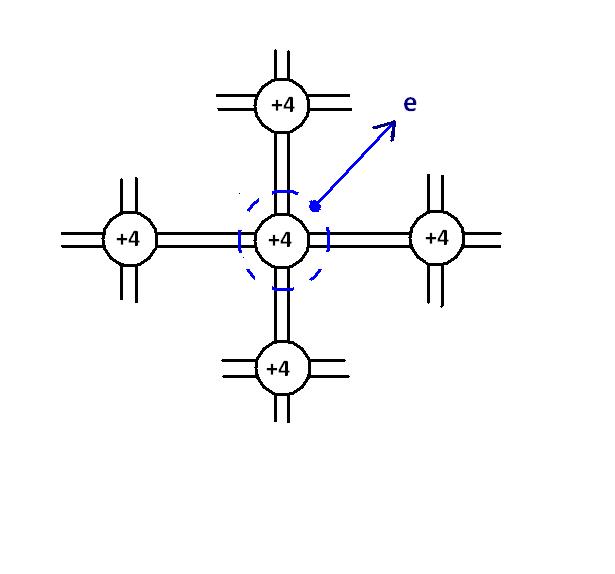 При замещении атома германия атомом трехвалентного вещества (индий, галлий, алюминий) его электроны вступят в ковалентную связь с тремя соседними атомами германия, а связи с четвертым атомом германия будут отсутствовать, так как у индия нет четвертого электрона.