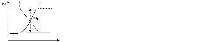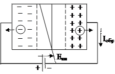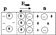 Из-за диффузии электроны из N-области проникают в P-область и в N-области остается некомпенсированный положительный заряд. На границе возникает разность потенциалов φк (потенциальный барьер) и образуется электрическое поле напряженностью E0, препятствующее диффузии. Для кремниевых диодов φк = 0,6 − 0,8 В; германиевых − 0,3-0,4 В.