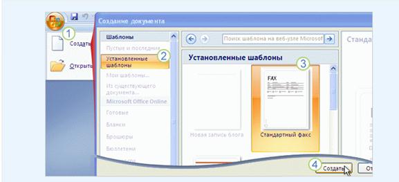 Нажмите кнопку Microsoft Office и выберите Создать.