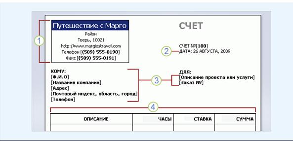 · Можно изменить содержимое шаблона таким образом, чтобы в нем хранились только те сведения, которые необходимы для каждого счета. Это избавляет от необходимости каждый раз удалять устаревшие сведения и, тем самым, помогает сэкономить время.