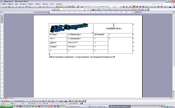 Рисунок 10.1Компановка документа-зписки в корпорации АВЦ
