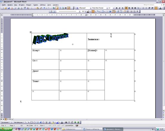 На рис. 10.2 показан промежуточный этап разработки шаблона для записок в корпорации ABC.