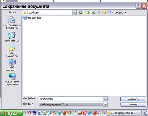 Шаблоны пользователя. Эта папка содержит шаблон Normal.dot, а также любой другой созданный пользователем шаблон. В любом случае, это должна быть личная папка при работе в сети или папка на жестком диске вашего компьютера.