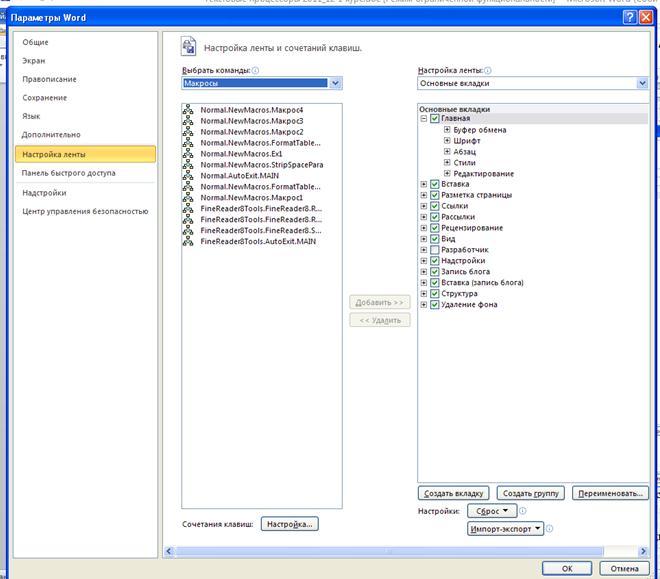 1. Если диалоговое окно Настройка ленты не открыто, в меню Файл выберите команду Параметры, Настройка ленты.
