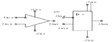 Название ОУ связано с первоначальным применением для различных операций над аналоговыми величинами (сложение, вычитание, дифференцирование, интегрирование). В настоящее время применяются как многоцелевые элементы в усилительной технике, устройствах генерации сигналов, в стабилизаторах напряжения, активных фильтрах и т. д. ОУ имеет дифференциальный вход (два входных вывода) и общий выход.