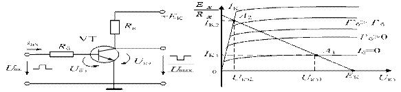 Переход из режима отсечки в режим насыщения осуществляется подачей U вх > 0. При этом повышению U вх соответствует понижение U вых. Поэтому ключ называют инвертирующим.