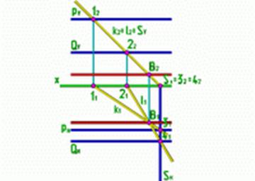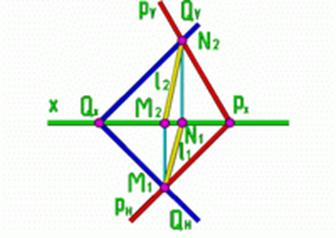 - введения вспомогательной секущей плоскости частного или общего положения, пересекающейся с двумя заданными плоскостями.