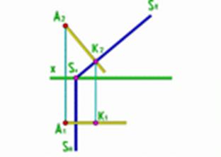 Пример: Даны фронтально-проецирующая плоскость S и точка A. Нужно найти расстояние от точки A до плоскости S.
