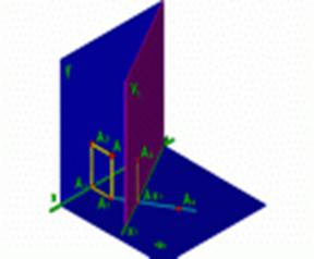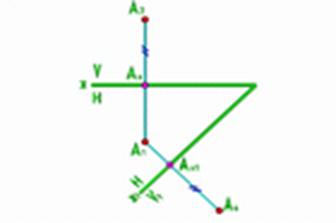Плоскость V1 пересекается с плоскостью Н по прямой x1, которая определяет новую ось проекций. Положение горизонтальной проекции А1 точки А остаётся без изменений, так как точка А и плоскость Н не меняли своего положения в пространстве.