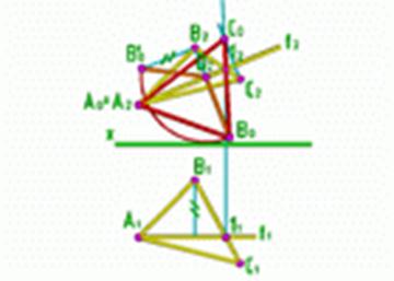 ABC) - общего положения. Нужно вращением вокруг фронтали определить истинную величину треугольника (