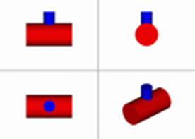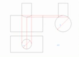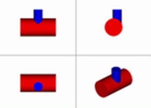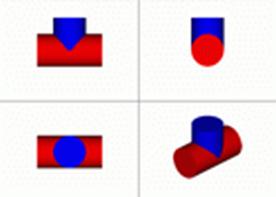 Если цилиндры разных диаметров, но оси пересекаются, то получим совпадение видимой и невидимой частей линии пересечения. d < D.