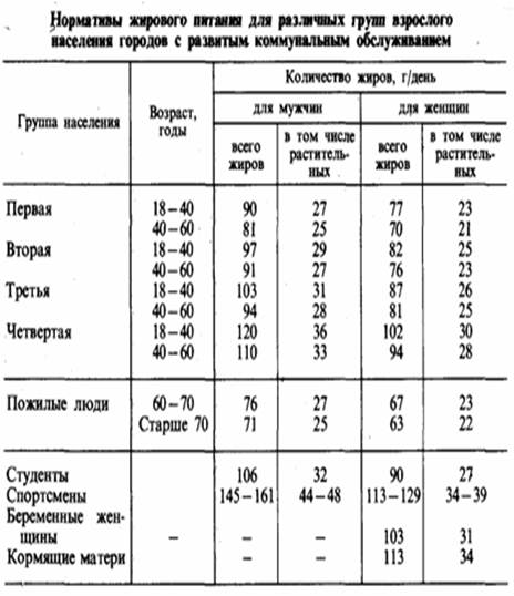 Таблица 7 – Нормативы жирового питания взрослого населения