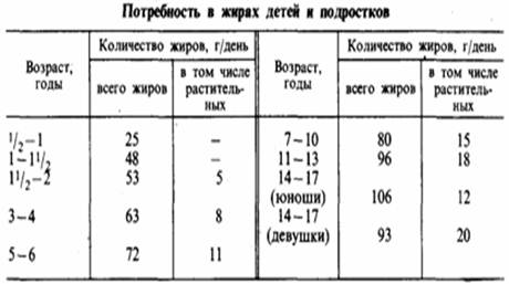 Что касается детского рациона, то содержание в нем жиров точно соответствует количеству белков (табл. 8).