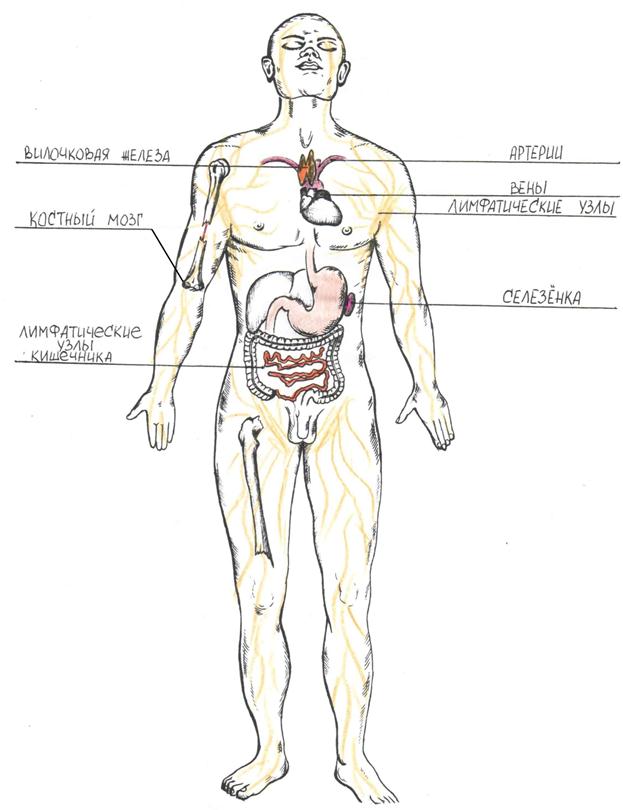 Иммунная система – это совокупность всех лимфоидных органов и скоплений лимфоидных клеток тела (их общая масса примерно 2 кг.)