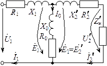 Таким образом следует, что ток ветви с элементами X 0, R 0 равен намагничивающему току İ 0 (эту ветвь называют намагничивающей). Сопротивление R 0 введено с целью учета тепловых потерь в сердечнике за счет гистерезиса и вихревых токов. Параметры X 0, R 0определяются экспериментально, из опыта холостого хода.