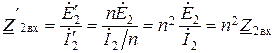 Для сохранения мощностей всех элементов вторичной цепи ее параметры нужно пересчитать так, чтобы ток I 2 уменьшился в n раз, т. е. = 2/ n. Это означает, что входное сопротивление вторичной цепи