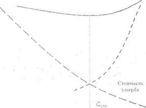 Совершенно очевидно, что оптимальным решением проблемы защиты информации было бы выделение средств в размере Сорt, поскольку именно при этом обеспечивается минимизация общей стоимости защиты информации.