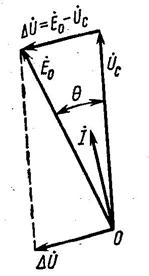 Под действием Δ в цепи протекает уравнительный ток I у, отстающий по фазе от Δ почти на 90°, так как сопротивление контура «сеть – синхронный генератор» практически равно индуктивному сопротивлению Х с генератора.