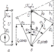 Схема замещения обмотки якоря (а) и векторная диаграмма(б) синхронного двига- теля |