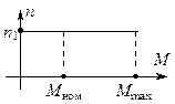 Механическая характеристика n = f (M) синхронного двигателя в режиме синхронизма (при M с < M ma x ) абсолютно жесткая, частота вращения не зависит от M с. Если нагрузить двигатель так, что момент сопротивления M с > M max, то θ превысит 90° и рабочая точка окажется на неустойчивом участке угловой характеристики, на которой у двигателя отсутствует свойство саморегулирования момента. В результате двигатель выйдет из синхронизма, что может привести к тяжелой аварии в сети. Поэтому в номинальном режиме устанавливают θном = 25÷35°, что обеспечивает запас по моменту KM = M max/ M ном = = 2÷2,4.