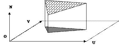 Чаще всего работают с планарным наложением текстур. Чтобы получить координаты (u,v), нужно сначала перевести координаты точки P в систему координат текстуры. Сначала совмещаем начала координат P’=P-O. Затем переводим в базис (U,V,N). Т.к. в общем случае U и V не единичные, то