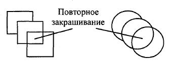 Такой подход к разработке алгоритмов толстых линий имеет преимущества и недостатки. Преимущество – можно прямо использовать эффективные алгоритмы для вычисления координат точек линии оси, например, алгоритмы Брезенхэма. Недостаток – неэффективность для некоторых форм пера. Для перьев, которые соответствуют фигурам с заполнением, количество тактов работы алгоритма пропорционально квадрату толщины линии. При этом большинство пикселов многократно закрашивается в одних и тех же точках (рис. 8).