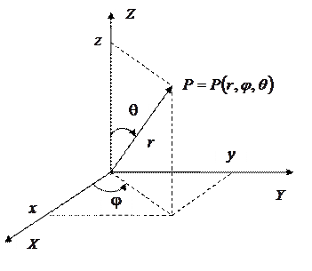 , в декартовой и сферической системе координат (рис. 7.9).