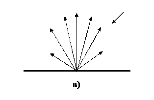 Для матовой поверхности законы отражения установлены Ламбертом. Их суть иллюстрируется рис. 13.2 и 13.3.