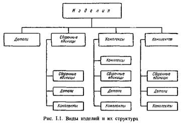 Устанавливаются следующие виды изделий: 1) детали; 2) сборочные единицы; 3) комплексы; 4) комплекты.