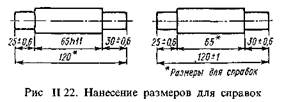 Размеры, не подлежащие выполнению по данному чертежу и указываемые для большего удобства пользования чертежом, называются справочными. Справочные размеры на чертеже отмечают знаком *, а в технических требованиях записывают «* Размеры для справок».