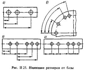 2) заданием размеров нескольких групп элементов от нескольких общих баз (рис. 11.25, в);